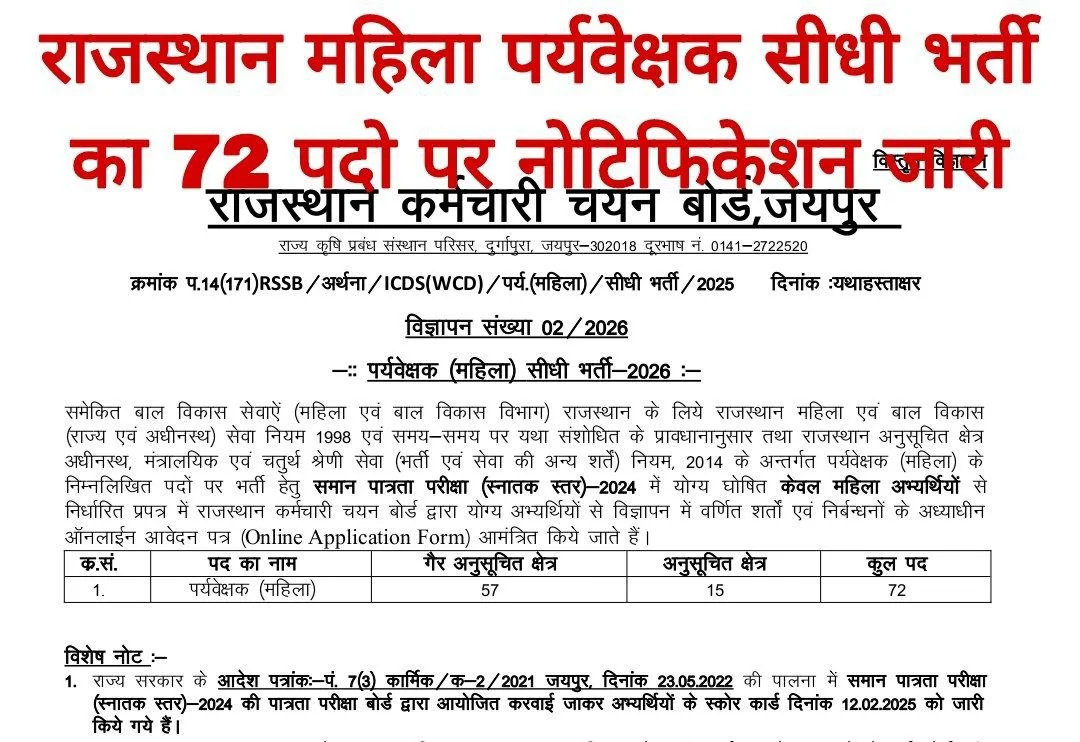 | Rajasthan Female Supervisor Vacancy 2026 Notification | Click Here |